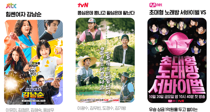 - 방송 + 월정액 영화, 1080p FHD(모든 디바이스) + PC/스마트폰/태블릿,크롬캐스트 이용가능 4K화질(안드로이드TV, 애플TV 일부 콘텐츠 한정) 이용 가능, 동시 시청 기기 최대 4대